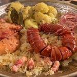 Met dit recept maak je Choucroute. Een Elzasser zuurkool schotel uit Frankrijk. De zuurkool wordt gestoofd in zoete witte wijn waardoor het een stuk minder zuur smaakt. De familieschotel wordt geserveerd met romige salie aardappels en verschillende stukken vlees waaronder natuurlijk spek.