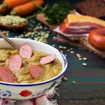 1. Breng in een grote pan 2 liter water aan de kook. Voeg 2 runderbouillonblokjes, 2 laurierbladeren, 500 gram spliterwten en 500 gram krabbetjes (of karbonade) toe. Schep zodra het water kookt het schuim wat ontstaat er met een schuimspaan af. Zet de pan op een lagere hittebron en laat de soep een uur langzaam koken.