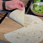 Snij een tortillawrap vanuit het midden naar de buitenkant door.